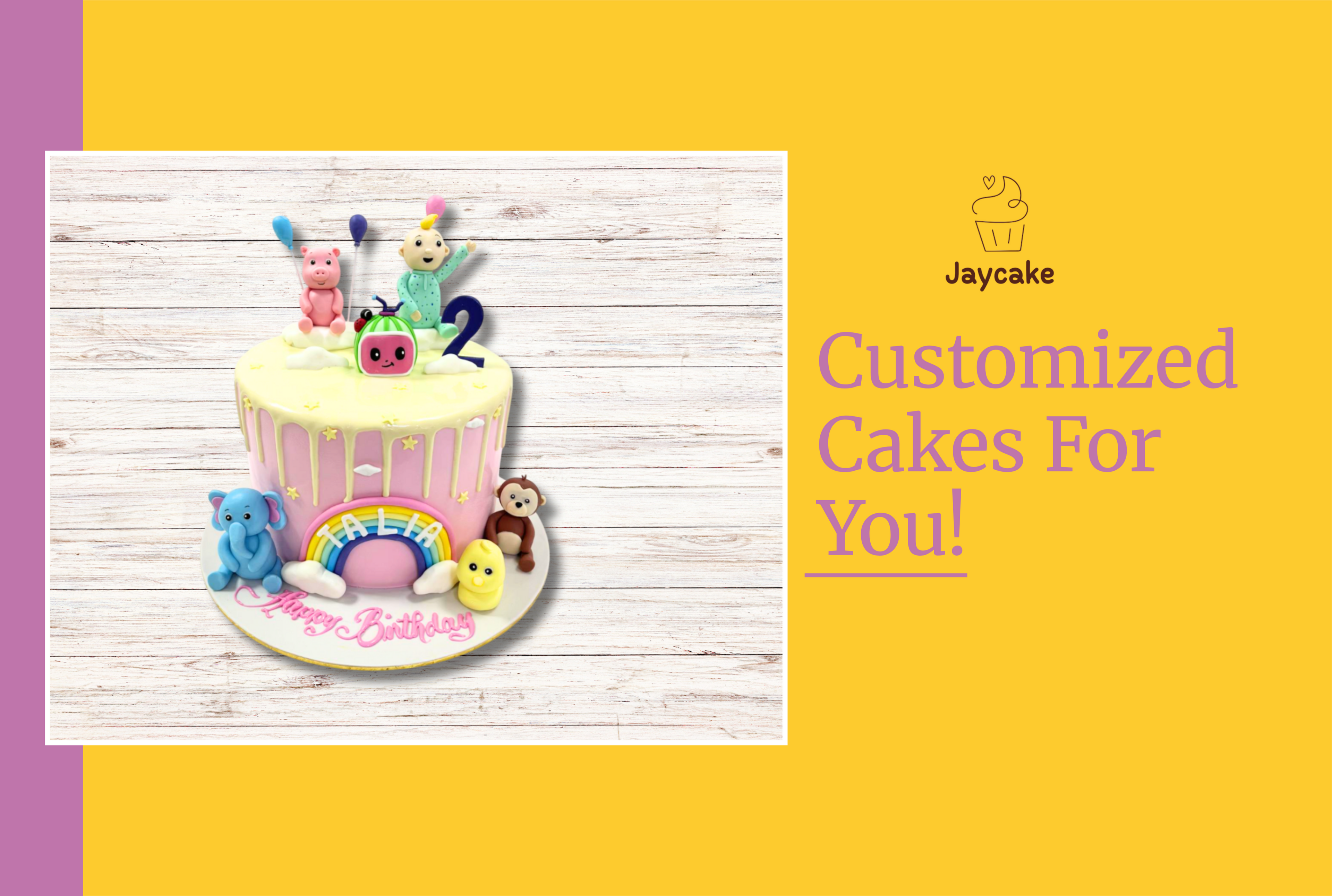 A delightful CoComelon-themed customized cake, perfect for little ones! Featuring vibrant colors and favorite characters like JJ, YoYo, and TomTom, this cake brings the beloved show to life. Decorated with playful fondant details, and the iconic watermelon logo, it’s topped with a cheerful birthday message—guaranteed to make any celebration extra special and fun-filled!